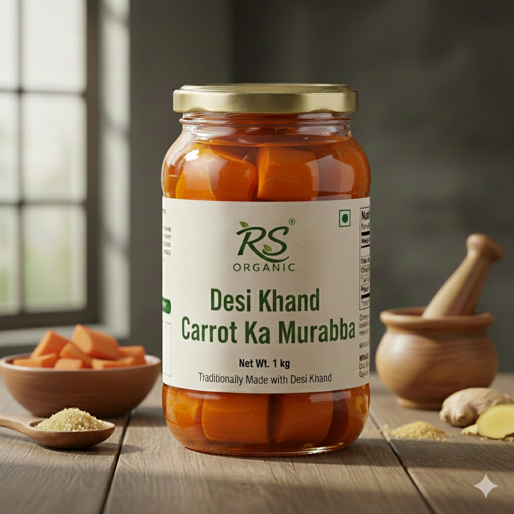 The originality of Desi Khand gajar murabba is the fact that it is made only from simple and pure ingredients. The main ingredients are:
